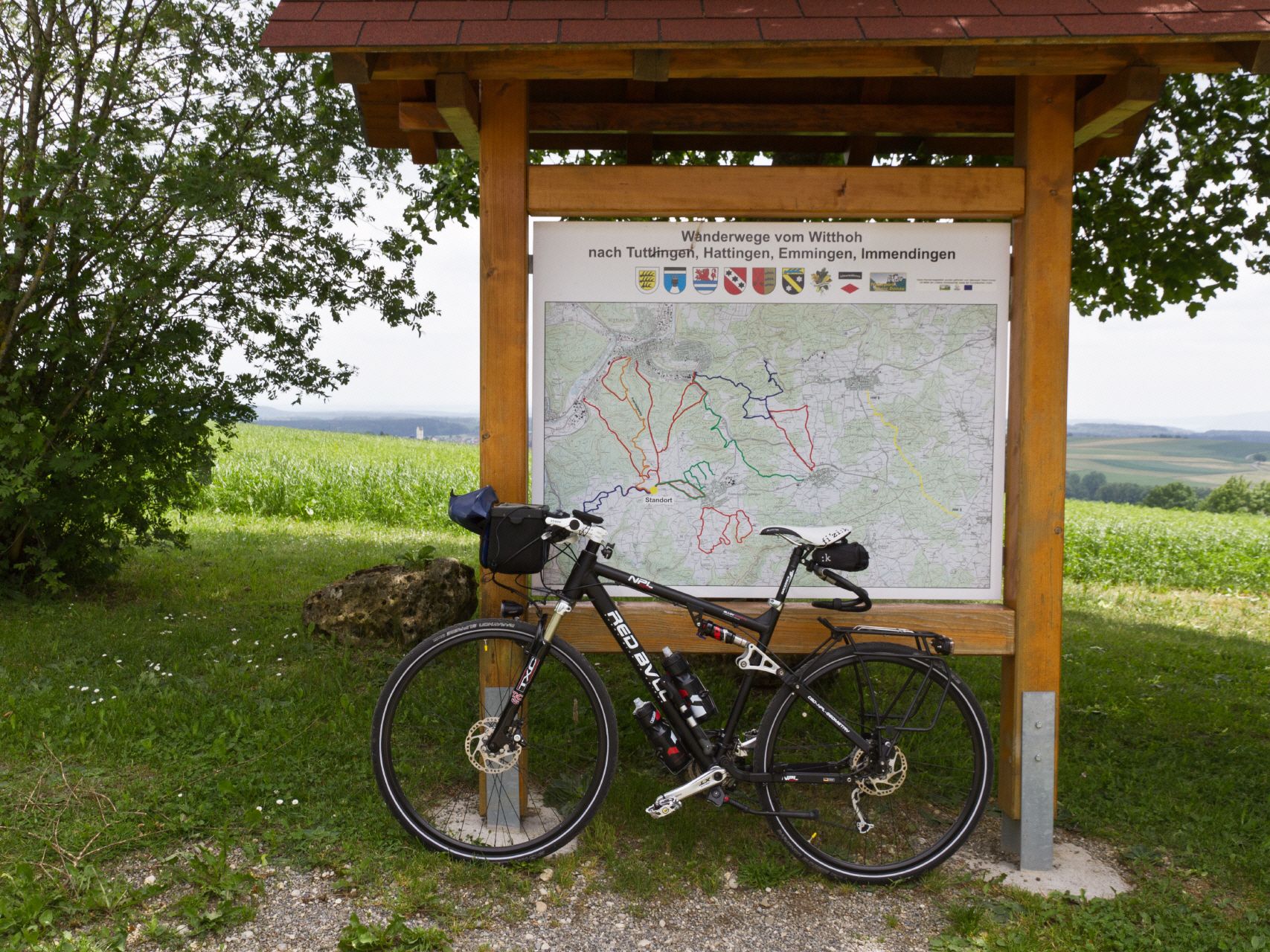 Fähre voller Radler | Gut besuchter Bodensee-Radweg | Stetiges Auf- und ab auf dem Hohenzollern-Radweg | Relaxen am Schömberger Stausee | Freunde besuchen in Balingen | Kettenprobleme beim Aufstieg zum Hohenzollern | Nettes Radlertreffen auf der Burg | Freunde besuchen in Horb | Gartenschau | Power-Rückfahrt Richtung Bodensee | Mittagspause in Friedingen an der Donau.