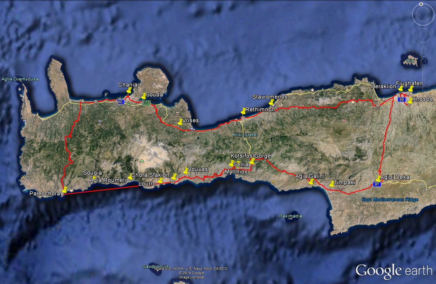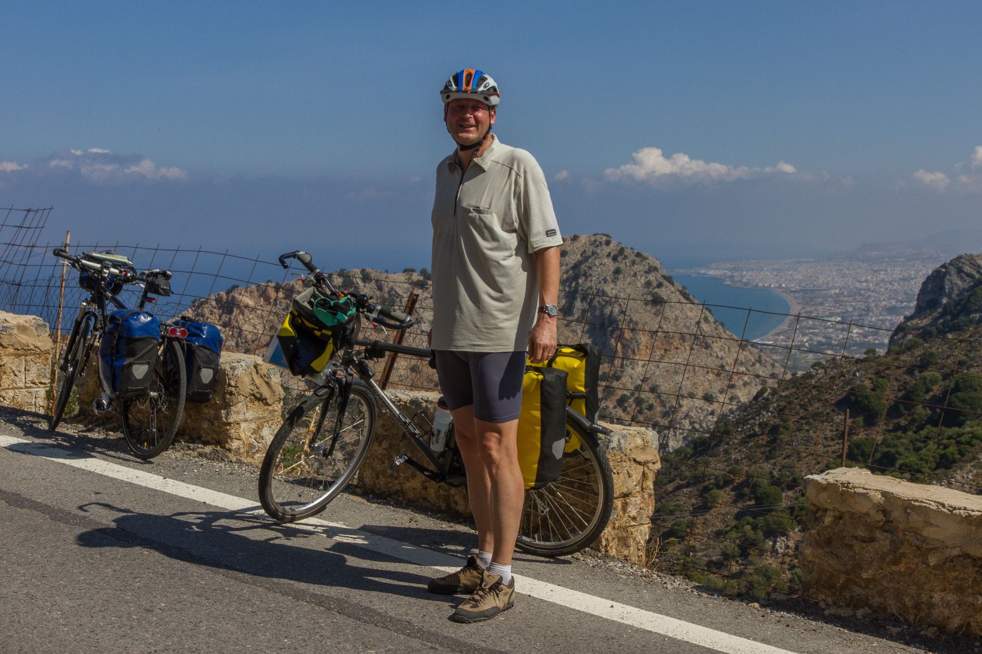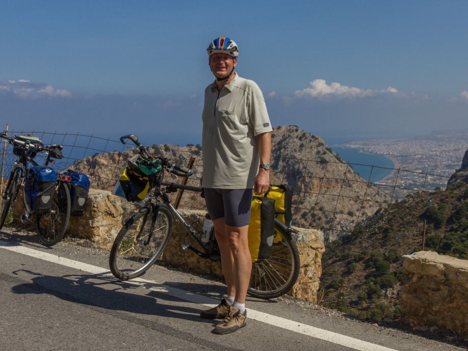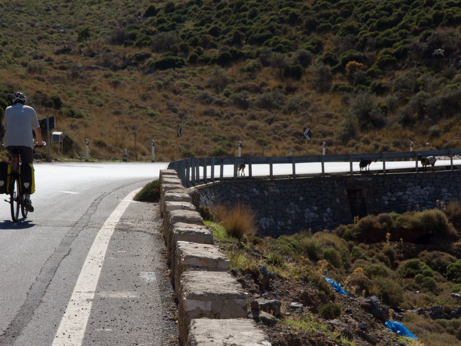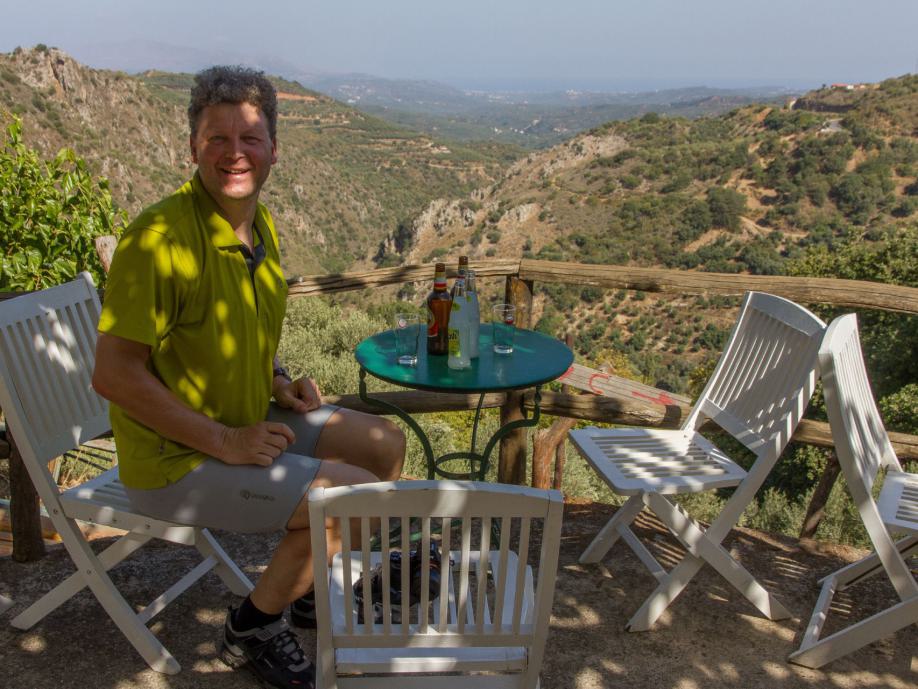 Odyssee beim Radeln vom Flughafen zum Hotel | Freilaufende Hunde sind der Horror | Hiraklon - eine Stadt mit vielen jungen Leuten | Knosos - Arthur Evans' Disneyland der Archäologie? | Und immer wieder grüßen die Wanderinnen vom Hotel Irini | Müll wird am Rande der Hauptstraßen entsorgt | In den Bergen wird's urtümlich und ruhig | Norwegisches Hotel in Stavromenos | Tourismus und venezianische Festung in Rethimnon | Wilde Strände erinnern an Oregon | Reifenpanne in Vryses | Beeindruckendes Chania - touristisch mit tollem venezianischen Hafen und massenweise Restaurants | Hotel Nostos - ein Traum | Der Wind bringt Abkühlung in den Bergen | Palaiochora - ein sehr nettes touristisches Örtchen, dass am Abend die Tische auf die Straßen stellt | Hotel mit Meerblick - der Standard | Raki im kleinen Fläschlein und ein Dessert gibts kostenlos nach jedem Essen | Von Palaiochora nach Hora Sfakion mit dem Schiff an der steilen Südküste entlang | Steiler Aufstieg bei 32 Grad ohne Schatten nach Vouvas | Auf und ab bis Marthios | Ferienwohnung mit Meerblick für 35 € | Durch die kühle Schlucht von Kotsifos Gorge | Vergangene Landwirtschaft und hohe Arbeitslosigkeit in Timpaki | Protzende Autofahrer - tiefergelegt und hochgestapelt | Übernachtung in Agioi Deka - das "echte" Griechenland? | Serpentinen durch Olivenhaine - der letzte große Anstieg | Und schon erreichen wir wieder Heraklion | Wind und Wellen am Hafen | Abbau des "imensen Druucks" in den Souvenirläden | Quirlige Bars in der Altstadt | Beeindruckende Museumsstücke der Minoer | Zu erwartende Hilflosigkeit des griechischen Flughafenpersonals beim Rad einchecken | Streik der Lokführer: Jörg muss extra einen Mietwagen nach Horb ordern.