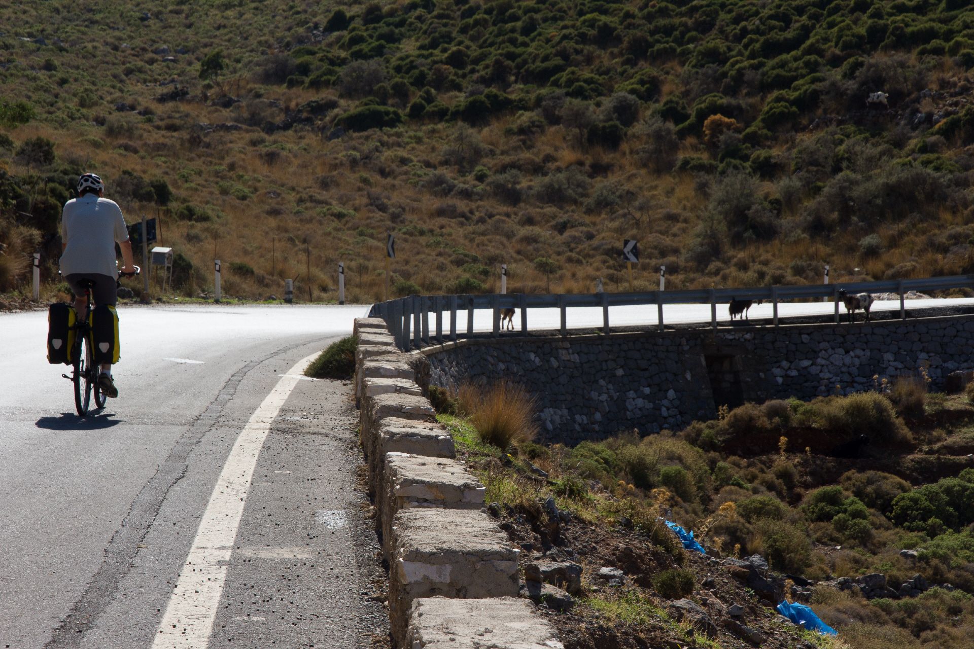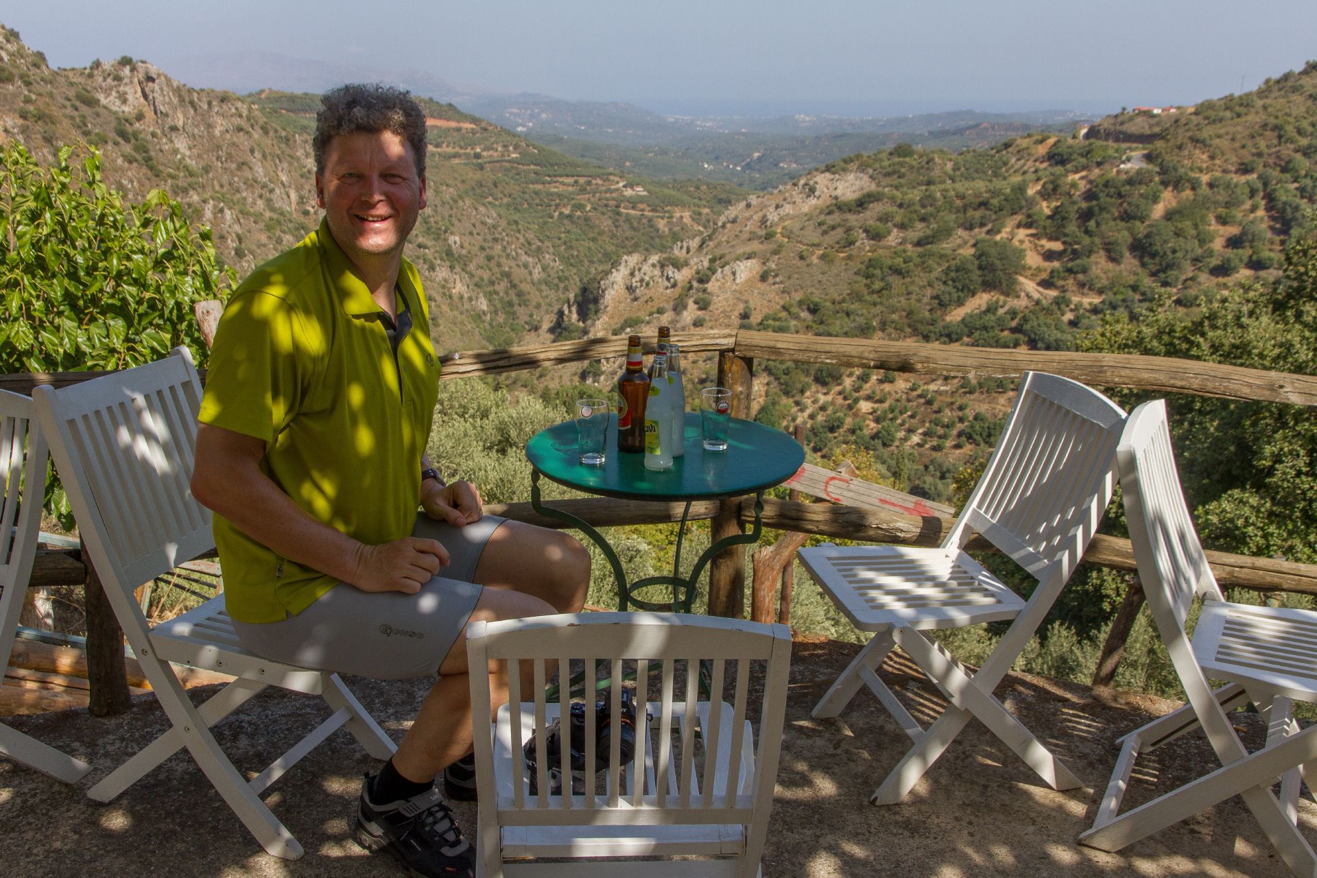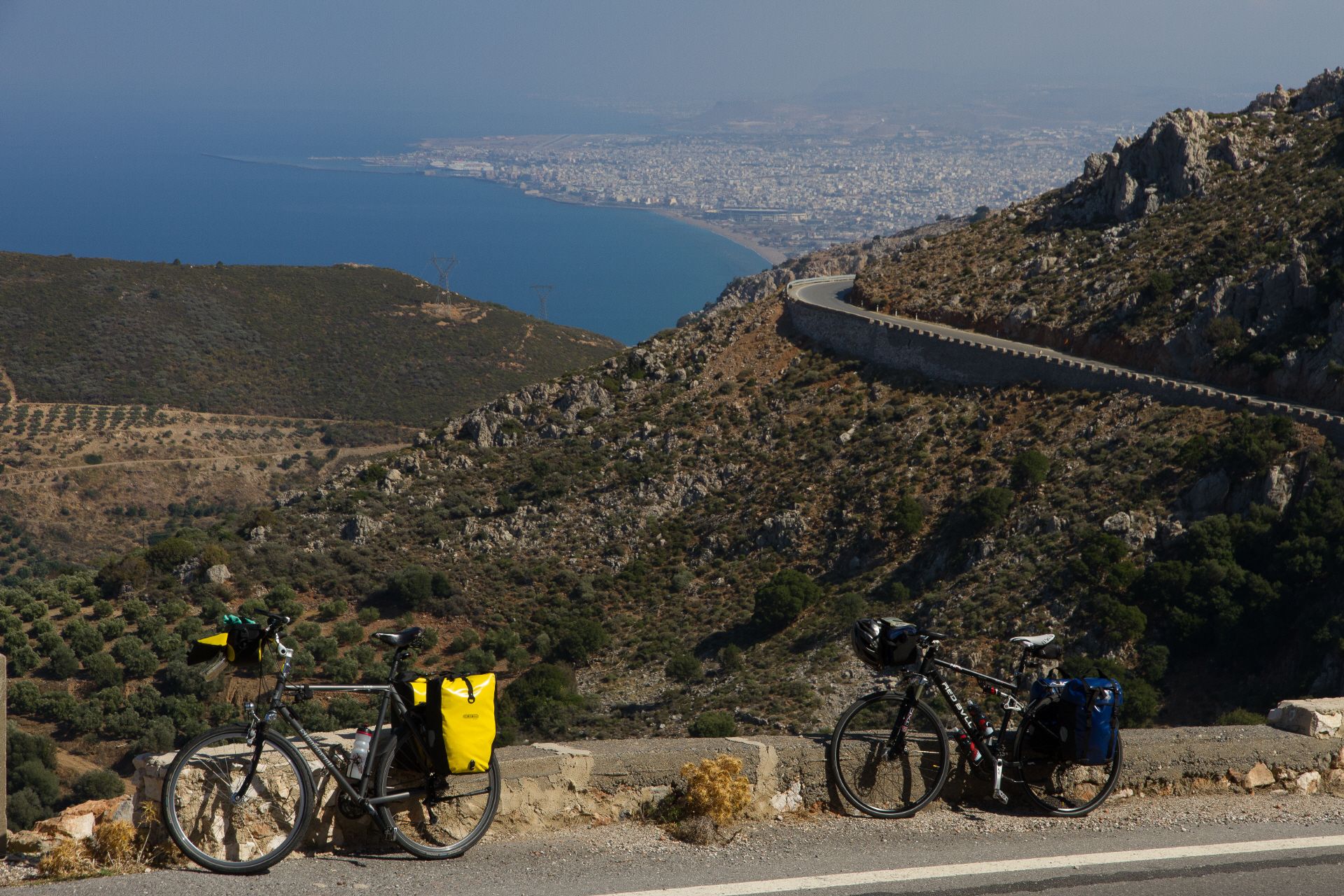 Odyssee beim Radeln vom Flughafen zum Hotel | Freilaufende Hunde sind der Horror | Hiraklon - eine Stadt mit vielen jungen Leuten | Knosos - Arthur Evans' Disneyland der Archäologie? | Und immer wieder grüßen die Wanderinnen vom Hotel Irini | Müll wird am Rande der Hauptstraßen entsorgt | In den Bergen wird's urtümlich und ruhig | Norwegisches Hotel in Stavromenos | Tourismus und venezianische Festung in Rethimnon | Wilde Strände erinnern an Oregon | Reifenpanne in Vryses | Beeindruckendes Chania - touristisch mit tollem venezianischen Hafen und massenweise Restaurants | Hotel Nostos - ein Traum | Der Wind bringt Abkühlung in den Bergen | Palaiochora - ein sehr nettes touristisches Örtchen, dass am Abend die Tische auf die Straßen stellt | Hotel mit Meerblick - der Standard | Raki im kleinen Fläschlein und ein Dessert gibts kostenlos nach jedem Essen | Von Palaiochora nach Hora Sfakion mit dem Schiff an der steilen Südküste entlang | Steiler Aufstieg bei 32 Grad ohne Schatten nach Vouvas | Auf und ab bis Marthios | Ferienwohnung mit Meerblick für 35 € | Durch die kühle Schlucht von Kotsifos Gorge | Vergangene Landwirtschaft und hohe Arbeitslosigkeit in Timpaki | Protzende Autofahrer - tiefergelegt und hochgestapelt | Übernachtung in Agioi Deka - das "echte" Griechenland? | Serpentinen durch Olivenhaine - der letzte große Anstieg | Und schon erreichen wir wieder Heraklion | Wind und Wellen am Hafen | Abbau des "imensen Druucks" in den Souvenirläden | Quirlige Bars in der Altstadt | Beeindruckende Museumsstücke der Minoer | Zu erwartende Hilflosigkeit des griechischen Flughafenpersonals beim Rad einchecken | Streik der Lokführer: Jörg muss extra einen Mietwagen nach Horb ordern.