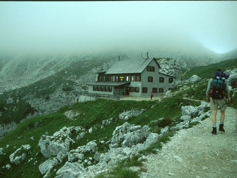 Leichter Regen am Falzarego | Gourmetessen auf der Rif. Averau | Rotwein mit dem Power-Wanderer auf der Tissi | Schneeeinbruch auf der Tissi | Vazzoler fast allein | Passo Duran: Kontakt mit dem 8000er-Hüttenwirt | Gewitter und Notunterkunft an der Malga la Rova | Rif. Fontana: Abendstimmung am Feuer | Schlechtwetter zwingt zum Abstieg.
